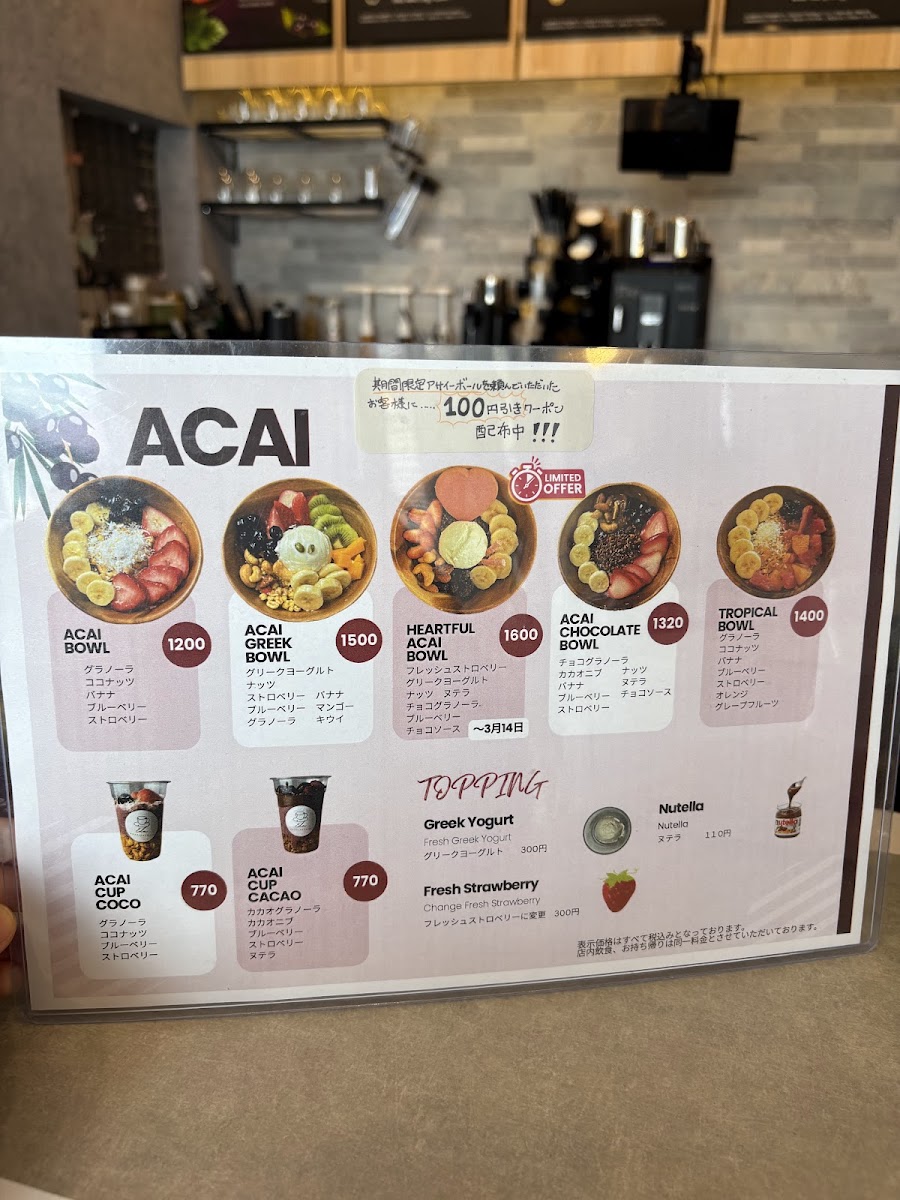 For those with a preference for classic flavors, the ACAIBOWL Strawberry featuring strawberries, blueberries, and chia seeds drizzled with honey is available for JP¥1,320. If you're ready for a tropical twist, the ACAI TROPICAL BOWL bursting with fruity flavors awaits your discovery!